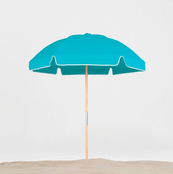 Built with the sunniest days in mind, Our Beach Umbrellas will exceed your expectations. Its ultra durable frame and heavy gauge resin parts makes this traditional umbrella the ultimate choice for your commercial, beach resort, hotel or beach concession environment.  Our umbrellas feature a fiberglass frame with ash wood pole with a pointed tip making it easy to post in the sand.  This umbrella features a two piece pole with either button installation to transport and store easily or screw in permanent for heavy use!  This umbrella is available with a valance providing a bit more shade, a bit more flair.