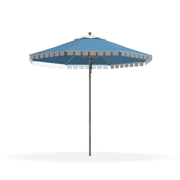 The Niles and Portola Series Market Umbrellas and Atherton and Tiburon Series Cantilevered Umbrellas are available with a variety of different custom umbrella canopy options.  Our customizing capabilities can help you achieve the look your designer or architect is trying to achieve by giving your restaurant, hotel, lounge or commercial space a unique look.  We can do the canopy in the same color or do a different color on the vent and/or valance.  Contact a project manager for pricing or more information.  This option is an upcharge depending on choices and available only on the Niles and Portola Series Market Umbrellas and Atherton and Tiburon Series Cantilevered Umbrellas.