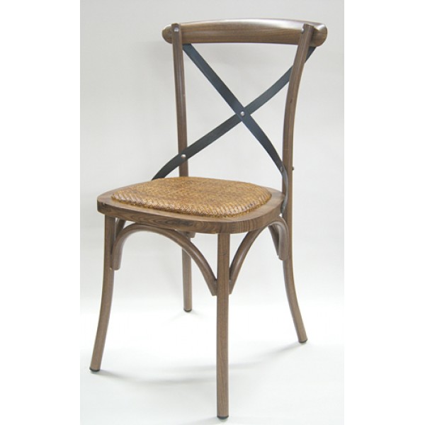 The Vino Collection features a design similar to the Cortona but with a twist!  The frame is all metal with a powdercoating that looks like wood.  Matte to the touch with a grain look, you’re sure to fool anyone – The look of wood with the durability of metal.  The Vino features a contrasting black cross back and a vinyl seat with a straw texture to it giving it that old world look!  Named after the Italian word for wine, this chair truly will work great with your restaurant, winery or wine bar making your patrons feel like they’re in Tuscany!  The compact frame is great for dining areas where space is limited yet comfortable enough to fit a variety of different sized people.  This chair is typically in stock and a different vinyl or fabric seat is available at an upcharge. Features