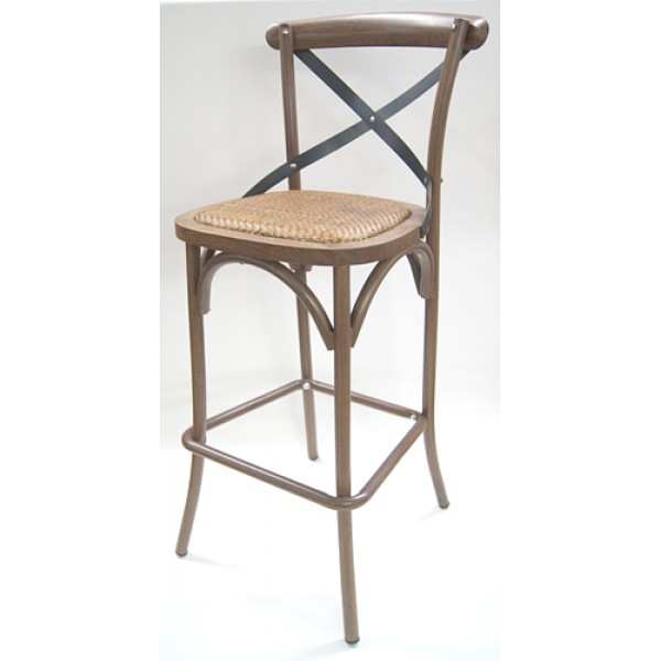 The Vino Collection features a design similar to the Cortona but with a twist!  The frame is all metal with a powdercoating that looks like wood.  Matte to the touch with a grain look, you’re sure to fool anyone – The look of wood with the durability of metal.  The Vino features a contrasting black cross back and a vinyl seat with a straw texture to it giving it that old world look!  Named after the Italian word for wine, this chair truly will work great with your restaurant, winery or wine bar making your patrons feel like they’re in Tuscany!  The compact frame is great for dining areas where space is limited yet comfortable enough to fit a variety of different sized people.  This barstool is typically in stock and a different vinyl or fabric seat is available at an upcharge. Features