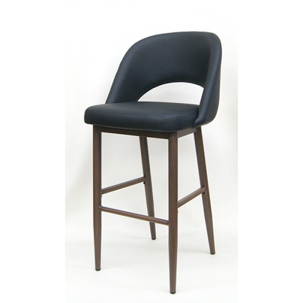 The Jetson bar stool will make you zip back in time!  The clean lines and curves are inspired by mid century design, paired with a vibrant orange, black or white vinyl upholstery and walnut colored tapered legs.  The frame is made out of metal and powdercoated to look like wood with a matte finish.  In stock, priced well, and comfy, the Jeston is a perfect way to add a pop of color and a dash of style to your bar.