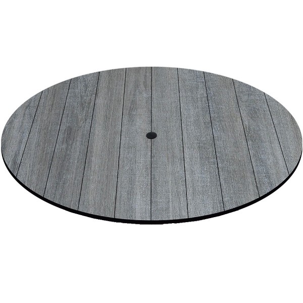 Our 36″ Round Compact Laminate outdoor table tops are an HPL product manufactured with high-tech polymers which provide extreme durability for both interior & exterior use. these tops Features a core comprised of thin layers of kraft paper saturated with phenolic resin and pressed under high temperature & pressure. It is then inspected & coated with a protective film. The Compact Laminate tabletops has high scratch, chemical and wear resistance and UV protection making it a perfect choice for a commercial environment.