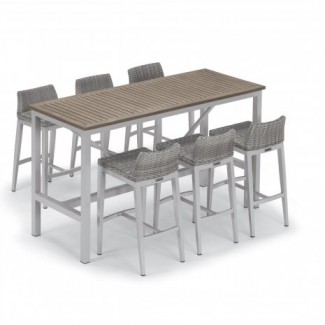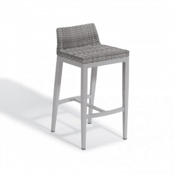 The Almar Bar Stool features a lightweight powder coated aluminum frame and legs with a fully woven seat with subtle curves; available with an optional cushion. It pairs beautifully with any of our outdoor bar tables with its clean design and neutral palette.