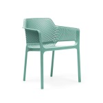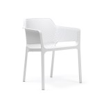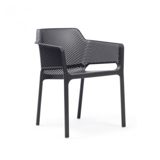 The Net arm chair is made of uniformly colored fiberglass polypropylene resins with UV additives making it durable for commercial use. The Net was designed tastefully in Italy featuring a diamond cut out pattern on the seat and back making it architecturally pleasing from every angle. This chair is stackable and typically in stock. The resin frame makes it easy to maneuver and handle in a busy restaurant whereas the fiberglass fibers help reinforce the legs and frame making it ideal for commercial use. The Net Armchair is a beautiful chair to complement any indoor or outdoor restaurant, cafe, or hospitality setting.
